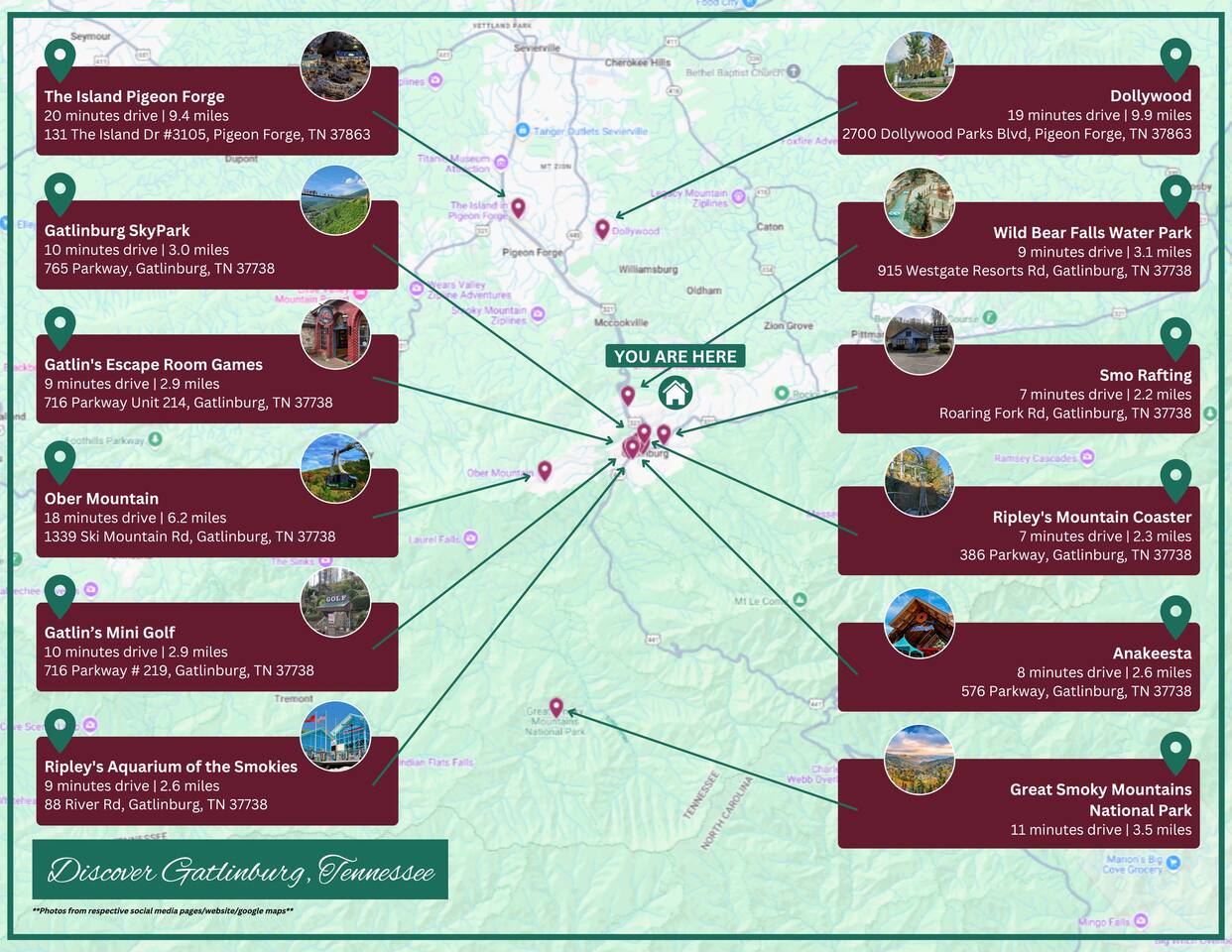 Located on easy-to-navigate roads, our cabin is ideally situated for exploring The Great Smoky Mountains. Less than 10 mins from the heart of downtown Gatlinburg, you’ll have quick access to all the entertainment, restaurants, and attractions the area has to offer. Ride sharing is not readily available in the area and a car is required. Taxi's require pre-booking.