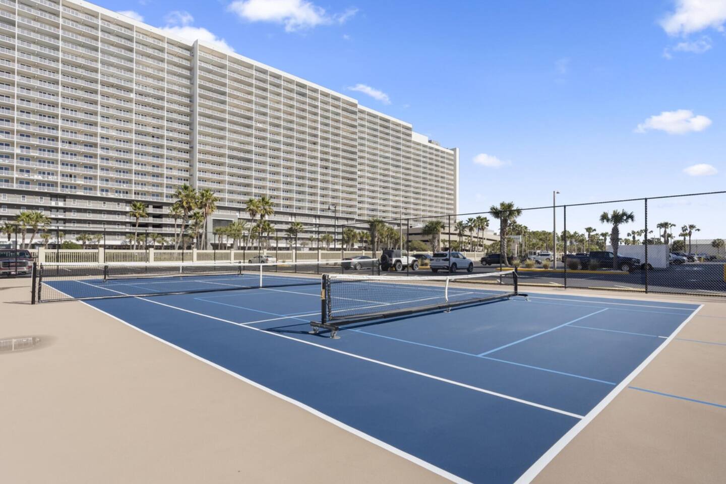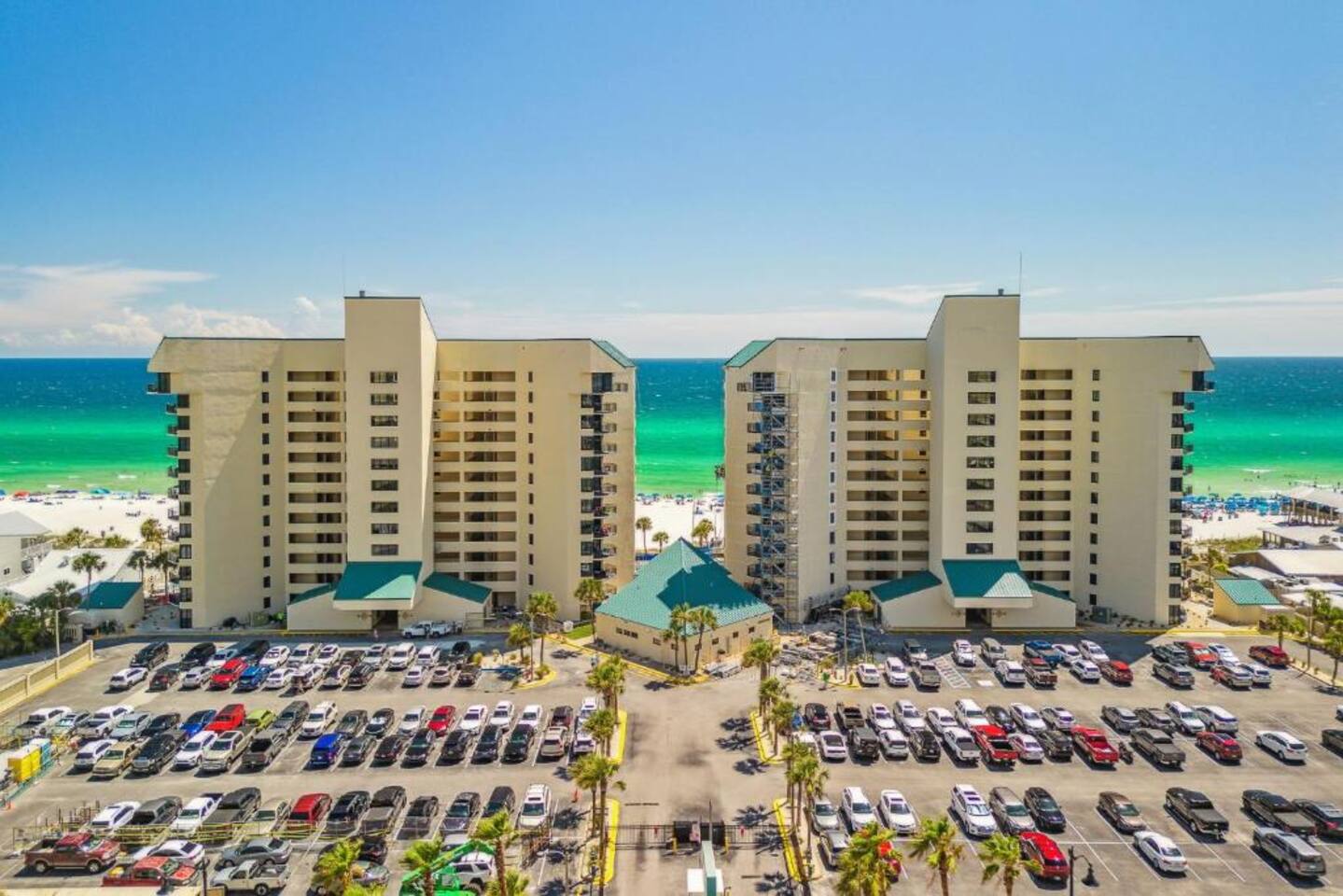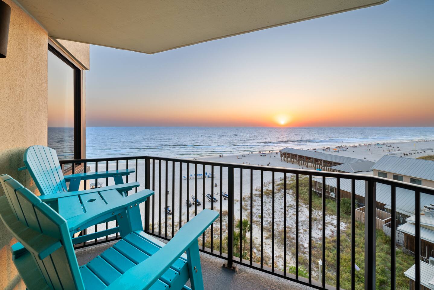 Beachfront with sweeping panoramic gulf views, this guest favorite condo is perfect for couples! Packed with amenities including balcony overlooking the beach, 3 oceanfront pools, pickleball, shuffleboard, fitness center. Guests love the convenient location, magnificent sunset views & proximity to Pineapple Willies's. You won't want to leave this cozy beach condo but you're in a prime location & only minutes away from great restaurants & attractions. ⚲ 0.5 mi: Walmart ⚲ 6.2 mi: Pier Park