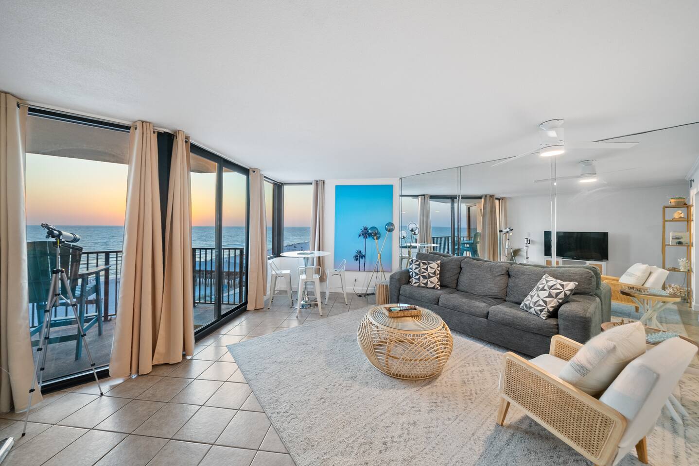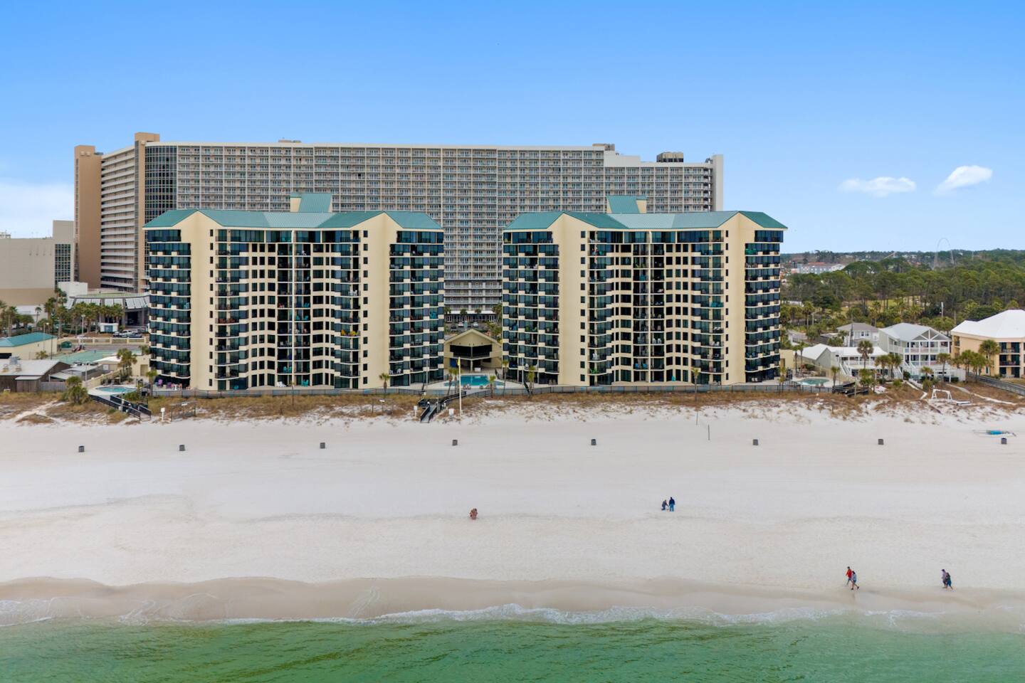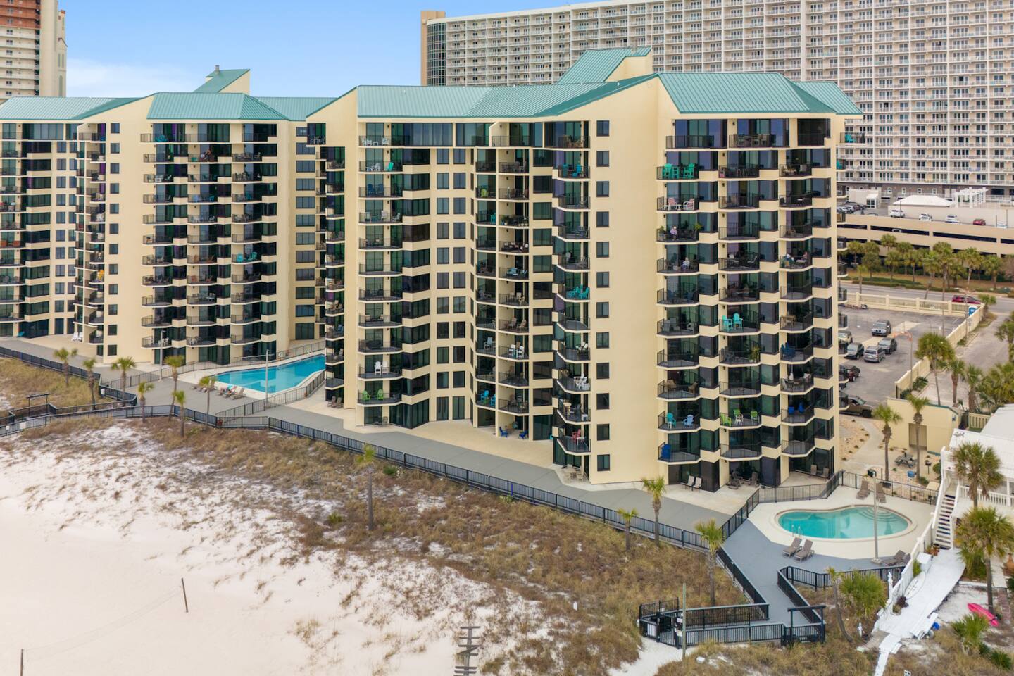 KEY FEATURES: ★ Perfect for Couples or Small Families! ★ 1 Queen Bed + 1 Queen SofaBed (Sleeps 4) ★ Direct Beachfront Location ★ Panoramic Floor to Ceiling Views (7th Floor) ★ 3 Pools (1 seasonally heated) ★ Private Balcony overlooking the Gulf ★ Close to Walmart, Restaurants & Attractions ★ High Speed WiFi (400mbps) ★ Fitness Center ★ Gated Parking Lot with 24-hr Security ★ 2 TV's w/ Streaming & DirectTV ★ Pickleball/TennisCourt/ Shuffleboard ★ Outdoor Grill & Picnic area ★ Low-rise complex (no long elevator waits) ★ Beach Kit Included: 2 chairs, umbrella, 4 towels NEARBY ATTRACTIONS: ⚲ 0.2 mi: Pineapple Willie's ⚲ 0.5 mi: Walmart ⚲ 0.5 mi: Ripley's Believe It or Not! ⚲ 0.6 mi: WonderWorks ⚲ 0.7 mi: Coconut Creek ⚲ 0.8 miles - Signal Hill Golf Course ⚲ 2.3 mi: Shipwreck Island Waterpark ⚲ 5.1 mi: St.Andrews State Park ⚲ 6.2 mi: Pier Park ⚲ 6.4 mil: Shell Island ✭✭✭✭✭ "I can't say enough about this place. If I was on my honeymoon this place would be a great place to be. The view was wonderful." ✭✭✭✭✭ "Unbeatable location, and a very clean place." ✭✭✭✭✭ "The condo was really nice, exactly as depicted in the pictures, and it was spotlessly clean." PLEASE NOTE: The HOA requires one member of booking party to be 25. Security will check ID's! No refunds given if this rule is not followed. 🖤 BEDROOM Queen-sized bed and smart TV with cable and streaming capabilities. Direct door into the bathroom for privacy (also accessible via a 2nd door off the kitchen). High-quality linens and room-darkening curtains are provided, so you can drift off in comfort to the sound of the ocean waves and wake up feeling refreshed! 🖤 LIVING ROOM Queen-sized sofa bed (new in 2024) with extra pillows, linens, and room-darkening curtains for a peaceful night’s sleep. Enjoy your favorite shows on cable or streaming apps, or unwind with music on the JBL stereo while taking in the sunset views through the floor to ceiling windows. 🖤 BALCONY Sip your morning coffee or evening cocktail from the Adirondack chairs on your private balcony as you take in the ocean breeze and endless Gulf views. 🖤 KITCHEN & DINING Stocked everything you need to prepare meals during your stay, including a drip coffee maker for ground coffee (cone-shaped filter). Enjoy your meals at the high-top table (perfect for beach viewing!) and with seating for four. Starter Kit is provided and includes Paper Goods, Trash Bags and Dish Detergent. 🖤 RESORT AMENITIES Pickleball & Shuffleboard: Equipment available for borrowing. Mobility mats at beach gates for easy access. Pools: Relax with lounge chairs; west pool heated year-round. Fitness Center: Treadmills, bikes, free weights, yoga mats, and resistance bands. Laundry: On the first floor with card, cash, and Apple Pay options. Book Today & Create Lifelong Memories in Panama City Beach!! 💫